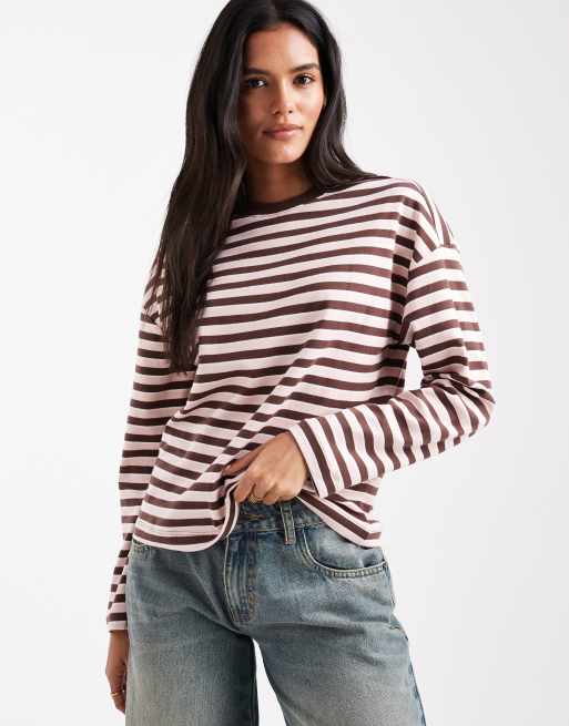 New Look - Top manches longues coupe carrée à rayures - Rose