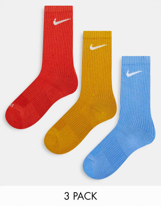 Nike Training - Lot de 3 paires de chaussettes rembourrées - Jaune, rouge et bleu