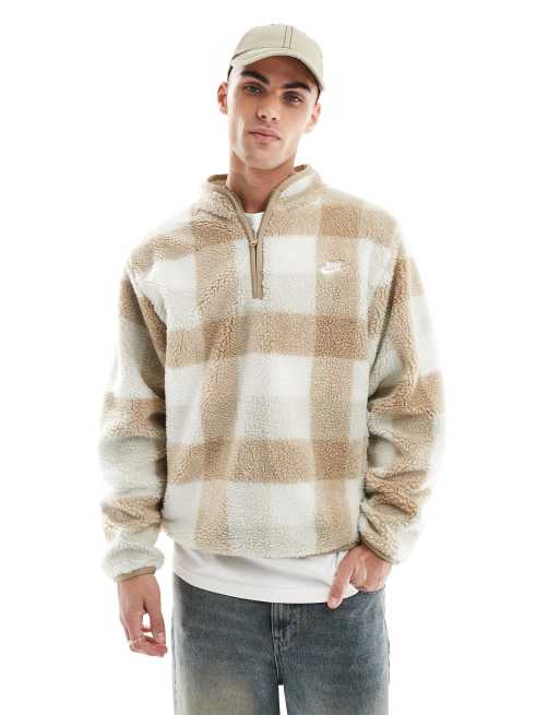 Nike - Club - Polaire à carreaux avec col zippé - Marron