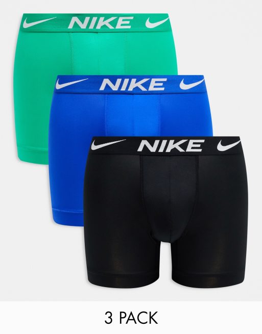 Nike - Dri-FIT Essential - Lot de 3 boxers en microfibre - Vert/noir/bleu