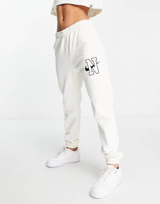 Nike - Jogger oversize unisexe en polaire style rétro avec logo - Blanc cassé