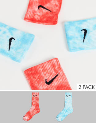 Nike - Lot de 2 paires de chaussettes effet tie-dye - Bleu et rouge