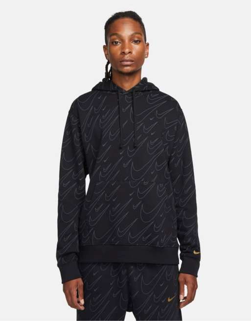 Nike - Sweat à capuche motif virgules - Noir et doré