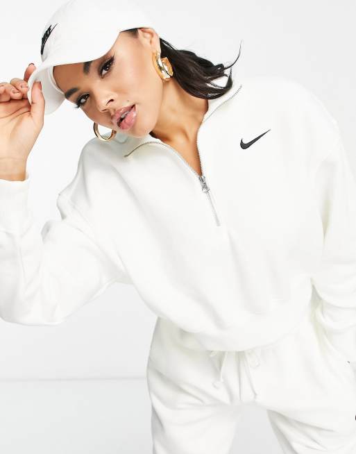 Nike - Sweat avec col zippé et petit logo virgule - Blanc voile