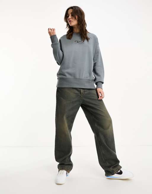 Nike - Sweat oversize en molleton avec logo virgule - Gris fumée