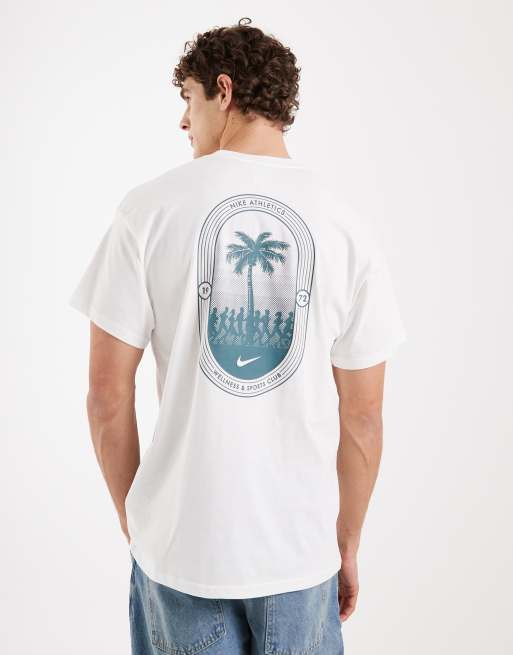 Nike - T-shirt à imprimé palmier au dos - Blanc