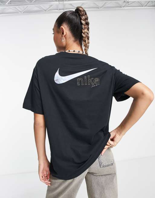 Nike - T-shirt boyfriend avec logo virgule métallisé au dos - Noir