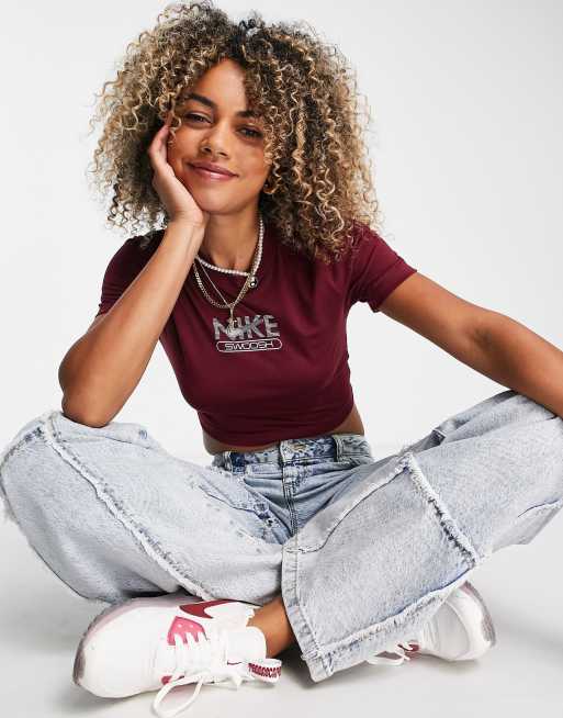 Nike - T-shirt crop top ajusté à imprimé graphique - Betterave
