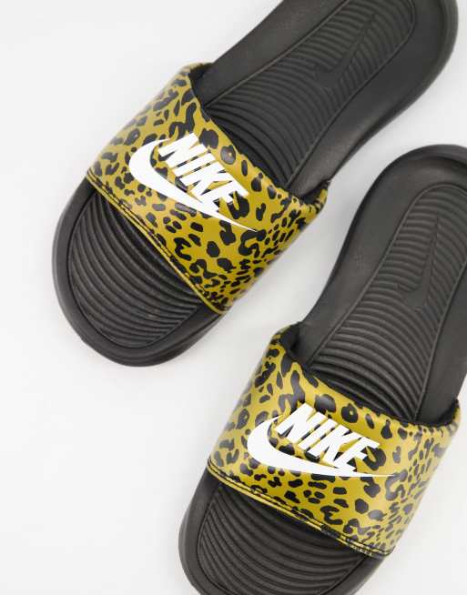 Nike - Victori - Claquettes à imprimé léopard - Marron