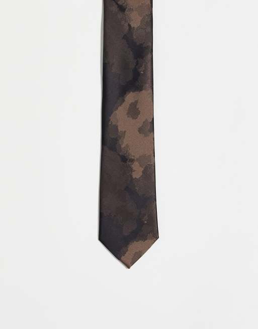 Noak - Cravate fine en jacquard à motif aquarelle - Marron et noir