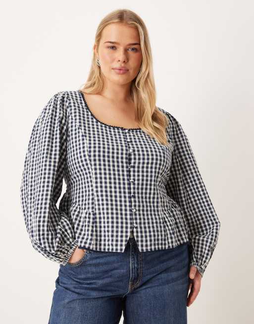 Nobody's Child Plus - Blouse à manches bouffantes et carreaux vichy - Noir et blanc