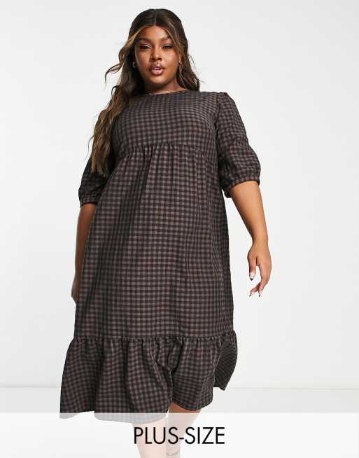 Nobody's Child Plus - Rachel - Robe babydoll mi-longue à carreaux avec manches bouffantes - Marron