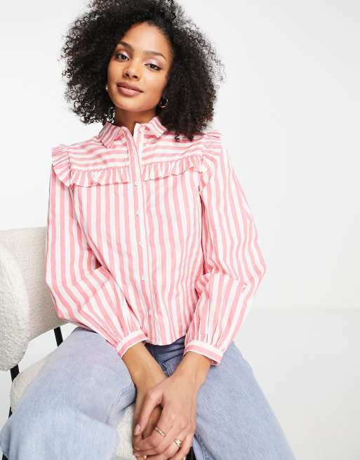 Nobody's Child - Chemise oversize à volants et rayures - Rose