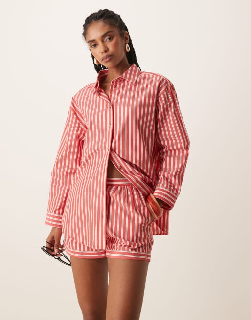 Nobody's Child - Cindy - Chemise d'ensemble décontractée à rayures - Rouge