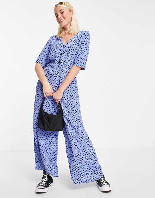 Nobody's Child - Combinaison large boutonnée - Bleu à imprimé fruit