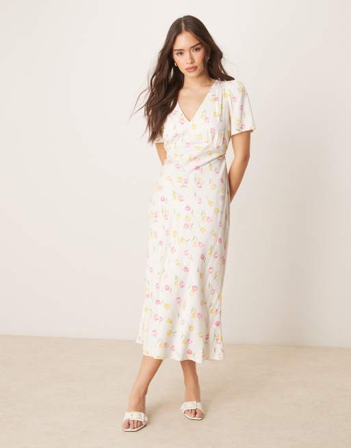Nobody's Child - Flora - Robe rétro mi-longue à motif tulipe - Crème