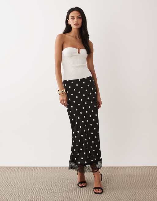 Nobody's Child - Jupe longue en satin à pois et ourlet en dentelle - Noir