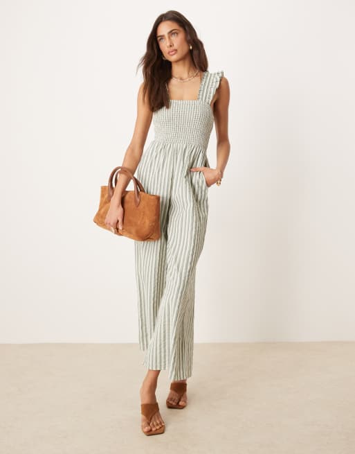 Nobody's Child - Maya - Combinaison large à rayures et manches à volants - Vert