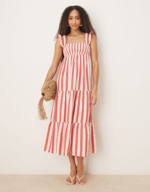 Nobody's Child - Maya - Robe rayée mi-longue à volants - Rouge