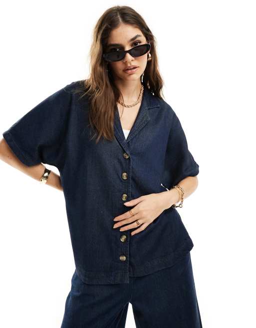 Nobody's Child - Roxy - Chemise décontractée d'ensemble en denim coupe carrée - Bleu marine