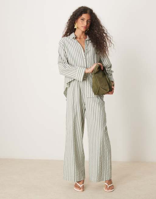 Nobody's Child - Tamar - Chemise d'ensemble aspect lin à rayures - Beige
