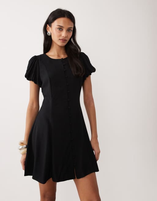 Nobody's Child - Tilla - Robe courte boutonnée à manches bouffantes - Noir