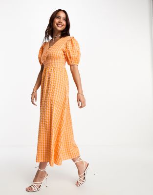 Nobody's Child - Wednesday - Robe mi-longue à carreaux vichy - Orange
