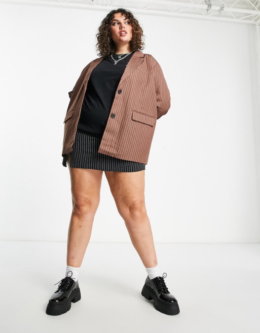 Noisy May Curve - Ensemble blazer oversize et pantalon à fines rayures - Fauve