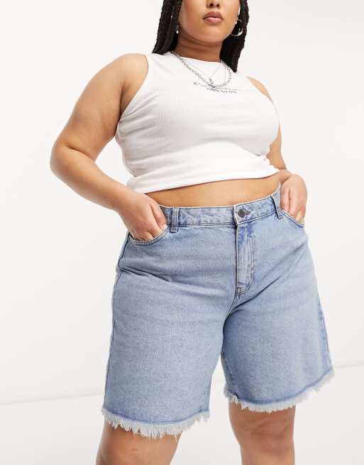 Noisy May Curve - Short long en jean effiloché - Bleu clair