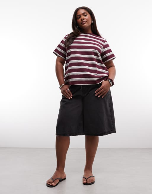 Noisy May Curve - Short long et ample à taille haute en denim - Noir