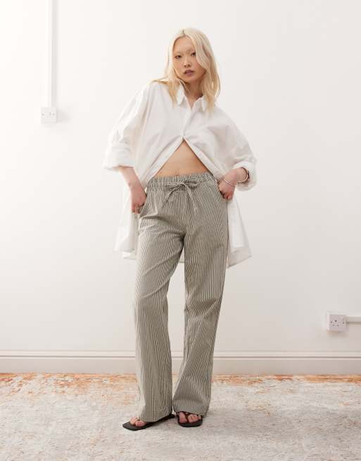 Noisy May Petite - Pantalon large à rayures avec liens devant - Gris
