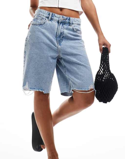 Noisy May - Bermuda taille haute à ourlet effiloché - Bleu clair délavé