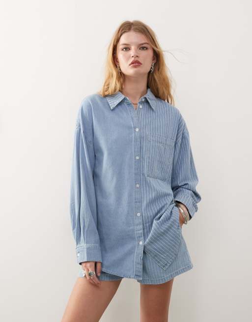 Noisy May - Ensemble chemise et short en jean à rayures - Bleu clair