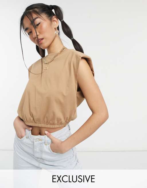 Noisy May - Exclusivité - Crop top à épaulettes - Camel