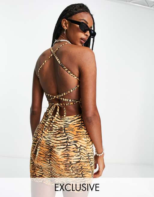 Noisy May - Exclusivité - Robe courte moulante avec dos lacé et imprimé animal
