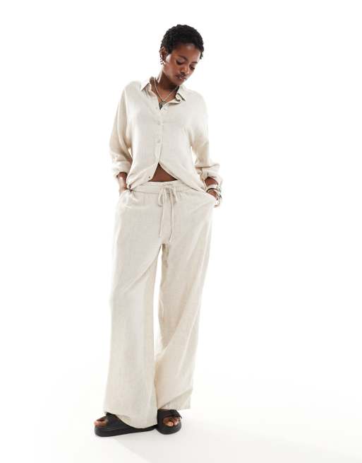 Noisy May - Pantalon d'ensemble large en lin mélangé - Avoine