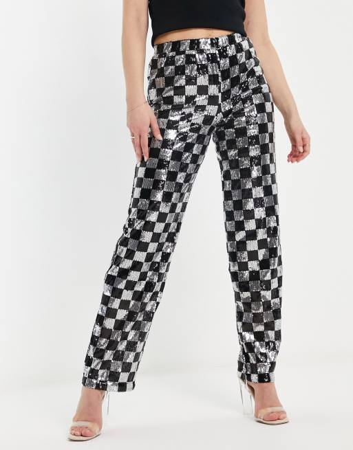 Noisy May - Pantalon droit d'ensemble avec motif damier à sequins - Argenté