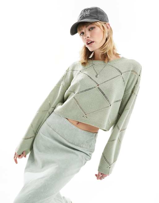 Noisy May - Pull en maille pointelle à col large - Vert clair