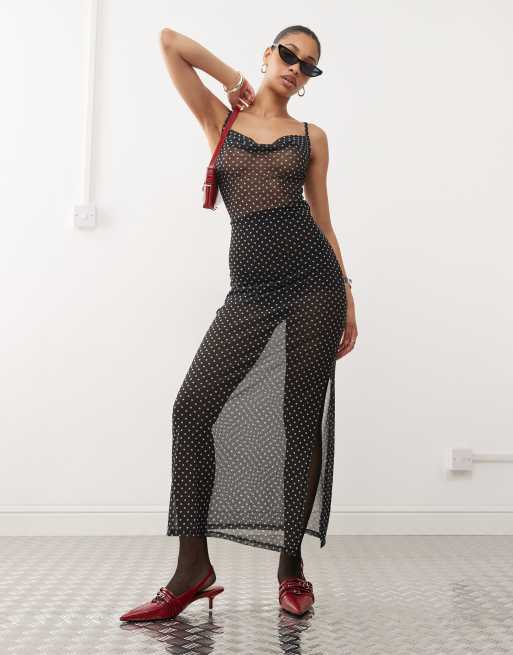Noisy May - Robe longue transparente à pois - Noir
