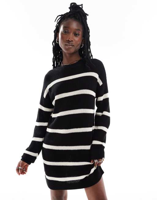 Noisy May - Robe pull oversize en maille à rayures - Noir et crème