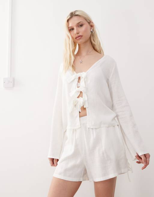 Noisy May - Short d'ensemble en lin mélangé noué sur les côtés - Blanc
