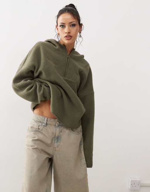 Noisy May - Sweat à capuche en polaire avec col zippé - Kaki