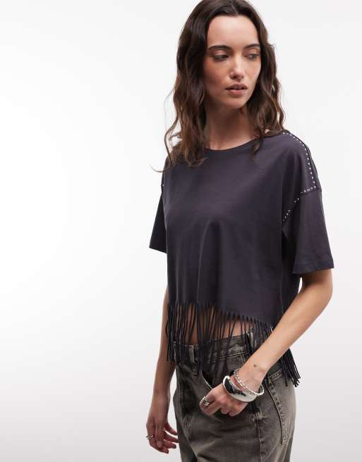 Noisy May-% - T-shirt à franges et clous - Anthracite