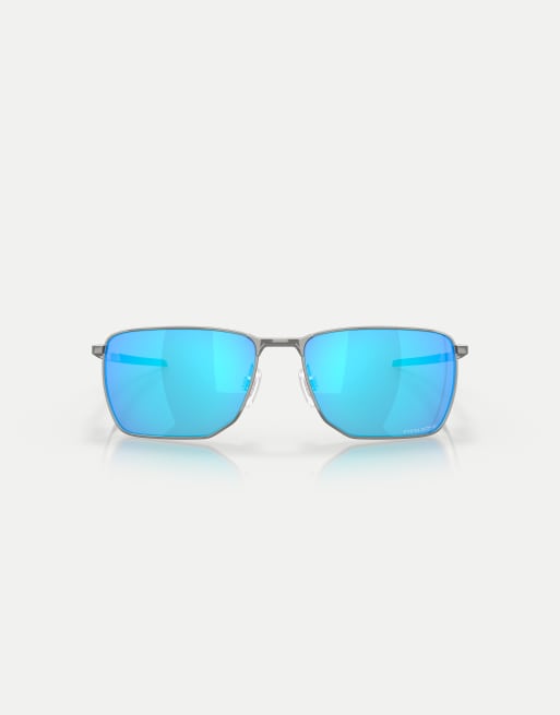 Oakley - Ejector - Lunettes de soleil rectangulaires à verres bleus effet miroir - Chromé satiné