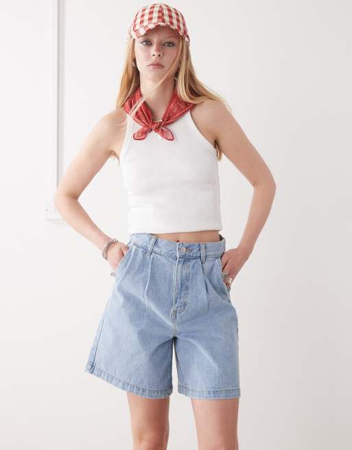 Obey - Eli - Short en jean plissé - Bleu clair délavé