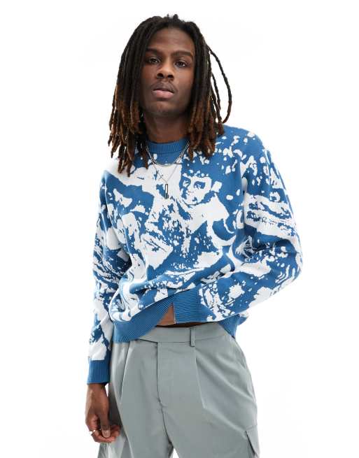 Obey - Pull en maille jacquard à imprimé surf foule - Bleu