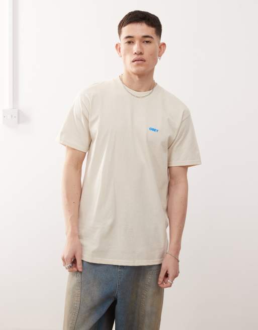 Obey - T-shirt à logo graphique et imprimé au dos - Crème
