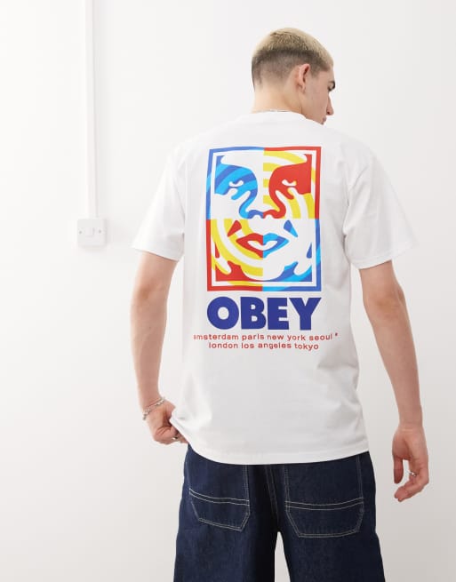 Obey - Target - T-shirt avec logo graphique et imprimé dans le dos - Blanc