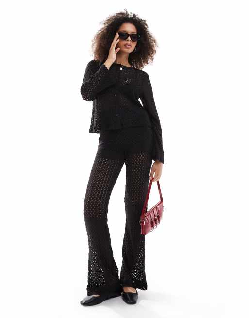 Object - Ensemble gilet et pantalon évasé en maille ajourée - Noir