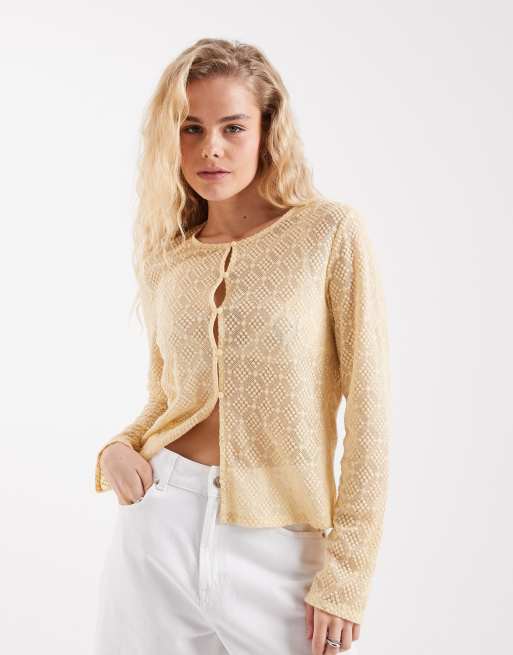 Object - Gilet boutonné devant en jersey transparent - Jaune soleil